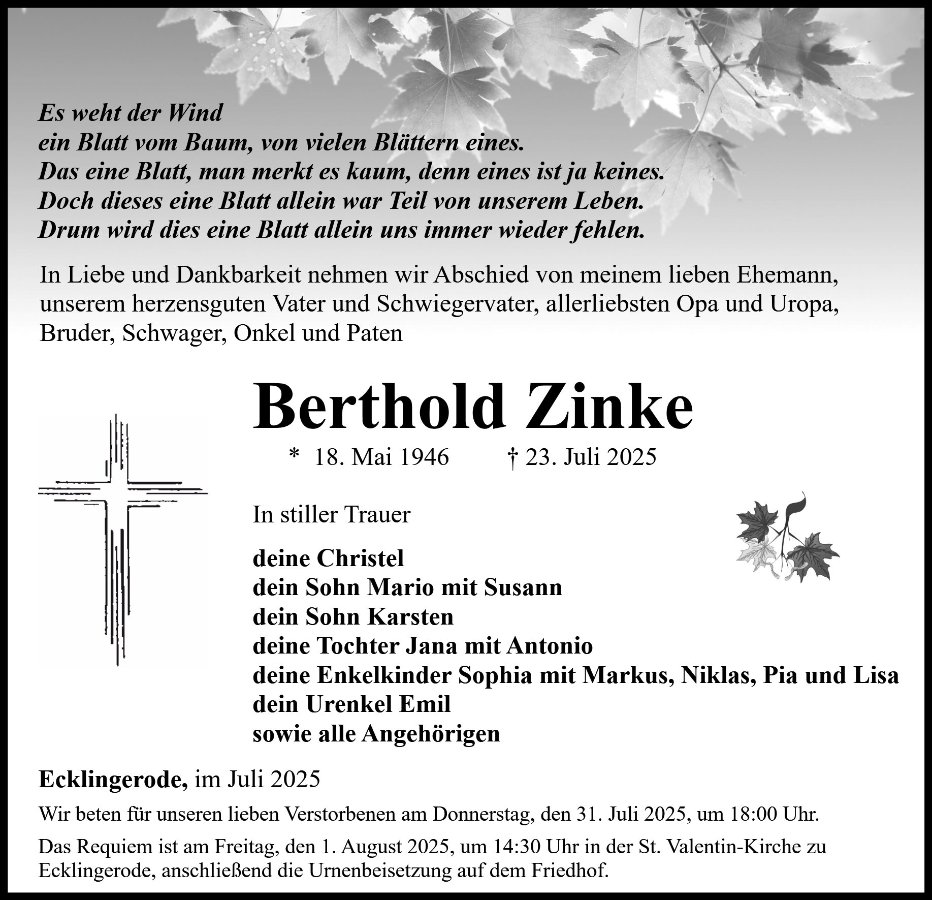 Berthold Zinkegestorben am 23. Juli 2025